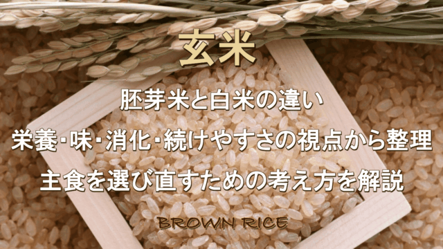 玄米基礎編 胚芽米と白米の違いは?味や体感から考える主食の選び方を解説 2026年2月16日 sutapa https://sukko.jp/wp-content/uploads/2025/06/genlogo.png 玄米を学ぼう