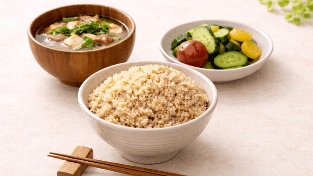 味噌汁は具材を入れすぎず、わかめや大根など消化の負担になりにくいものを少量使う形が一般的です。漬物も同様に少量を添える程度にとどめ味付けが強くなりすぎないよう意識します。主役を玄米ご飯にして味噌汁と漬物を添えるという考え方が基本になります。