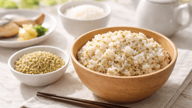 白米と合わせることで全体のまとまりを保ちながら青玄米(若玄米)の持ち味が引き立ちます。日常の食卓で無理なく取り入れたいときに最も自然な使い方です。