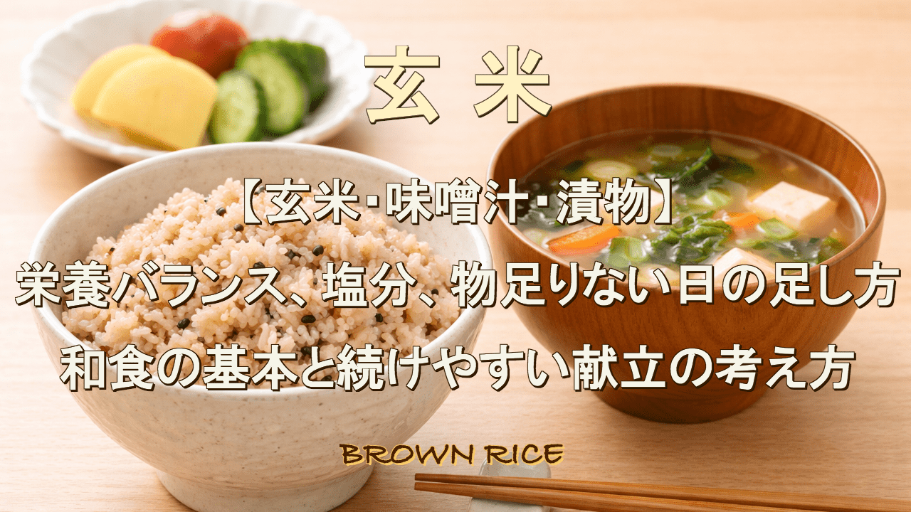 このコンテンツでは玄米・味噌汁・漬物というシンプルな食事の考え方を整理しながら栄養バランスや塩分、物足りない日の調整方法などをわかりやすく紹介します。毎日の食卓に無理なく取り入れられる形として玄米を中心にした和食の基本を見直してみませんか。