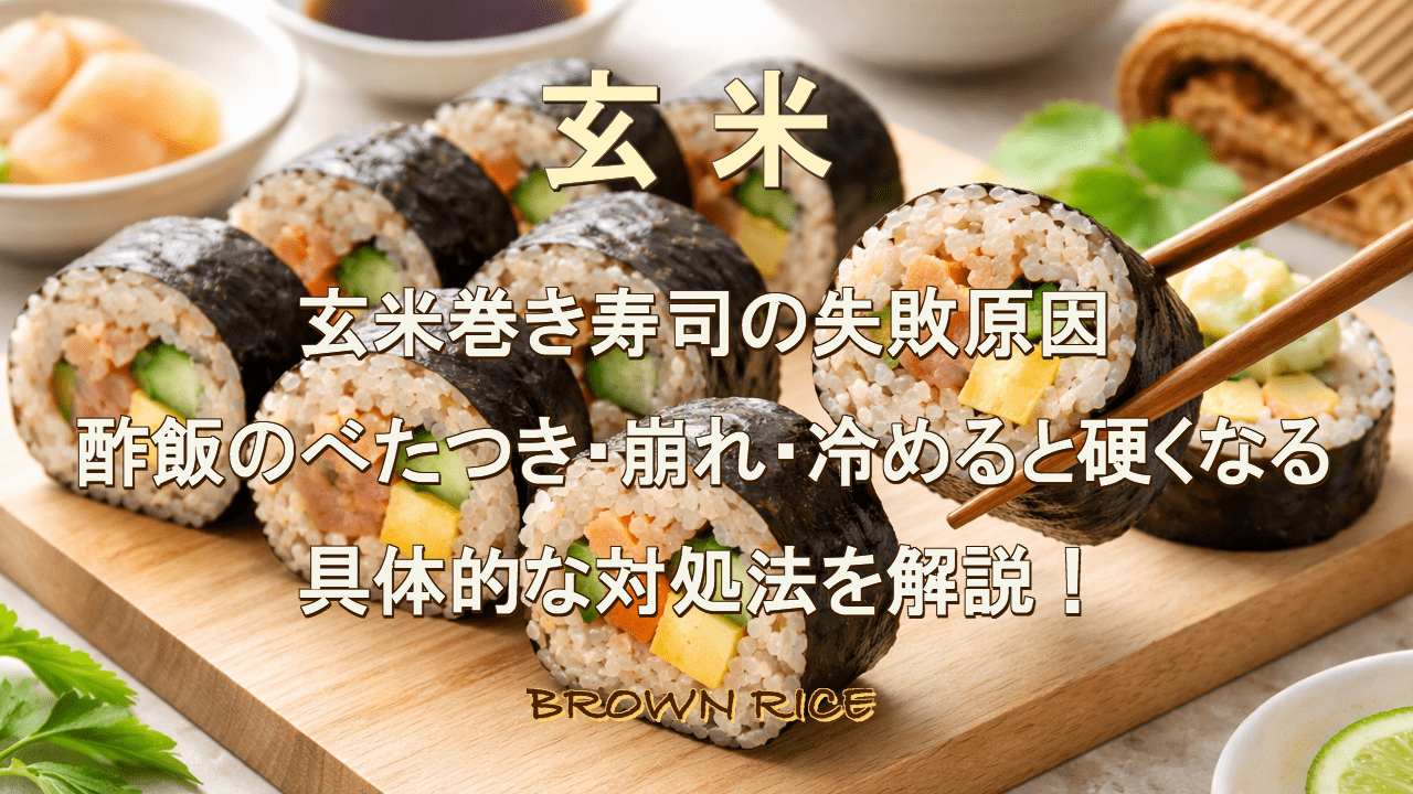 玄米で巻き寿司を作ってみると形が崩れる。白米ではできていたのに玄米では難しく感じる。吸水・水加減・酢合わせ・具材の水分・冷めたあとの変化について知ることで、しっかり巻けるようになります。このコンテンツでは玄米巻き寿司が失敗しやすい理由を整理しながら具体的な見直しポイントを丁寧に解説します。