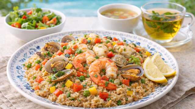 玄米シーフードピラフは炭水化物・食物繊維・植物性たんぱく質・動物性たんぱく質・脂質・ミネラルが重なり合う料理です。副菜やスープがあればより栄養バランスは整いますが一皿でも形になります。「玄米の栄養」と「海鮮の栄養」が自然に重なる構造を持っていることが、この料理の魅力です。