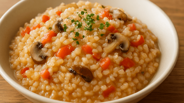 さらに具材を組み合わせることでバランスが向上します。トマトでリコピン・きのこでβグルカン・豆乳でたんぱく質を補えます。調味料を控えても素材の旨みで十分に満足できるのが玄米リゾットの特徴です。手軽でも栄養をしっかり摂れる主食として長く続けやすい料理です。