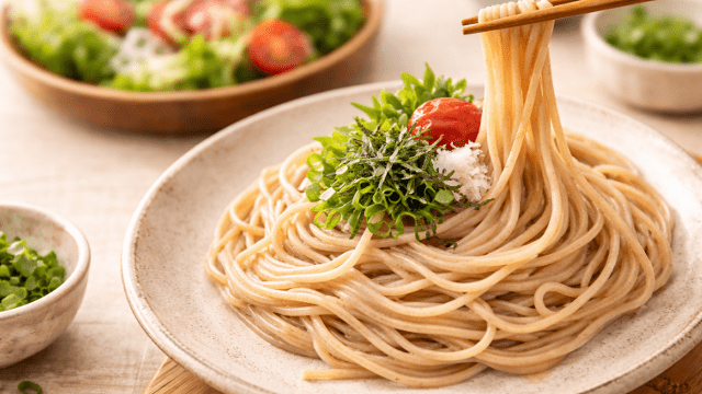 和風では出汁や醤油ベースの味付けがよく合います。温かい麺としてつゆと合わせると玄米の風味がやわらぎ食べやすくなります。また冷たい麺として薬味や海藻と合わせることで軽さを出すこともできます。